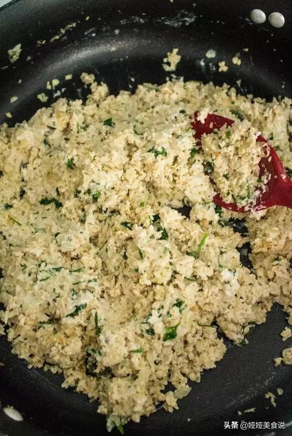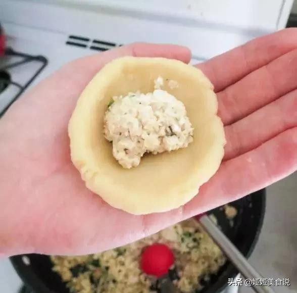 舀一勺鸡肉馅,