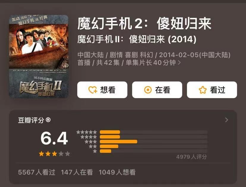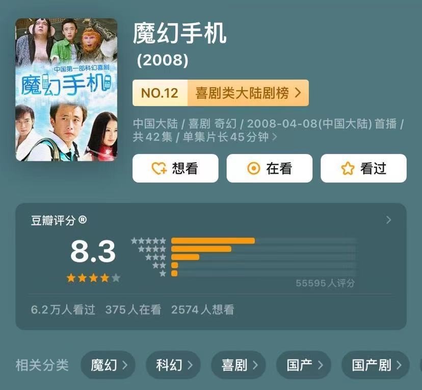 不过随着时间的推移,《魔幻手机》的豆瓣评分出现了戏剧化的转折,截止到今年,这部剧从最初的3.9分提升到如今的8.3分,可谓实现了惊天大逆转。