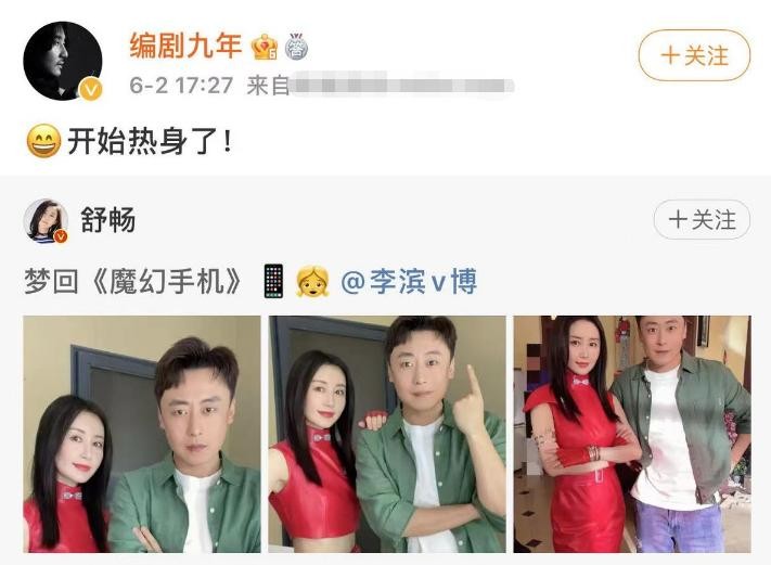 《魔幻手机3》终于要来了?舒畅李滨晒合照疑似回归,剧本已完结