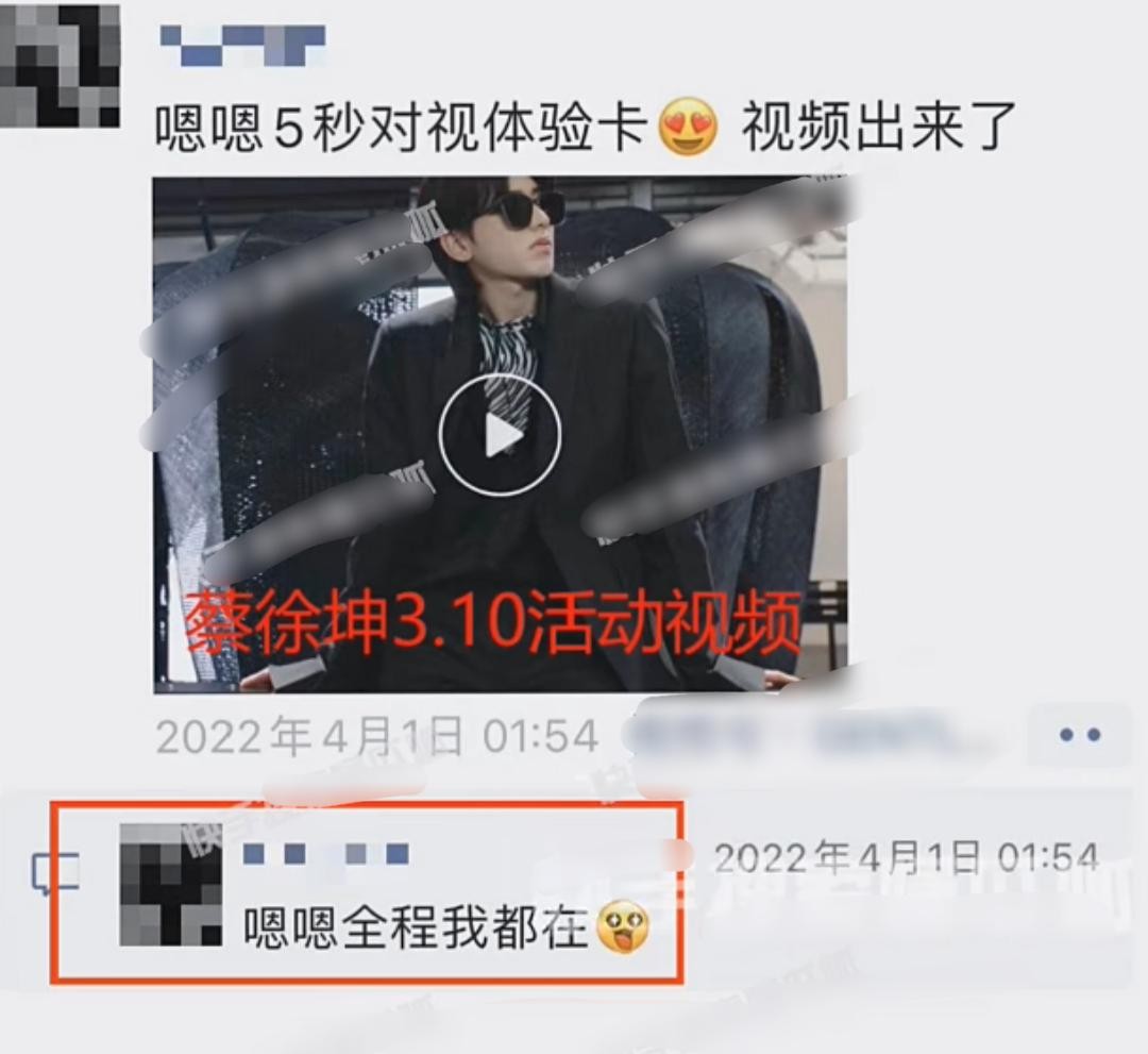 此外,在工作室公布了品牌活动的广告的次日凌晨,W女士也在朋友圈晒出了自己拍摄的蔡徐坤3月10号拍眼镜广告的视频,并且留言称“嗯嗯,全程我都在”。