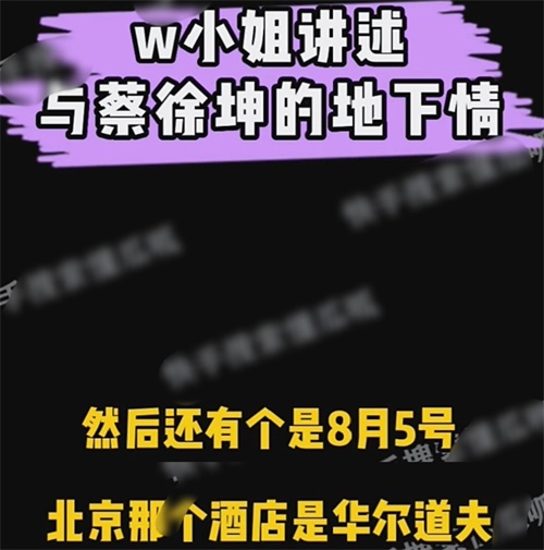 当晚蔡徐坤约W女士去了疑似是活动方提供的酒店,地址是北京的华尔道夫。
