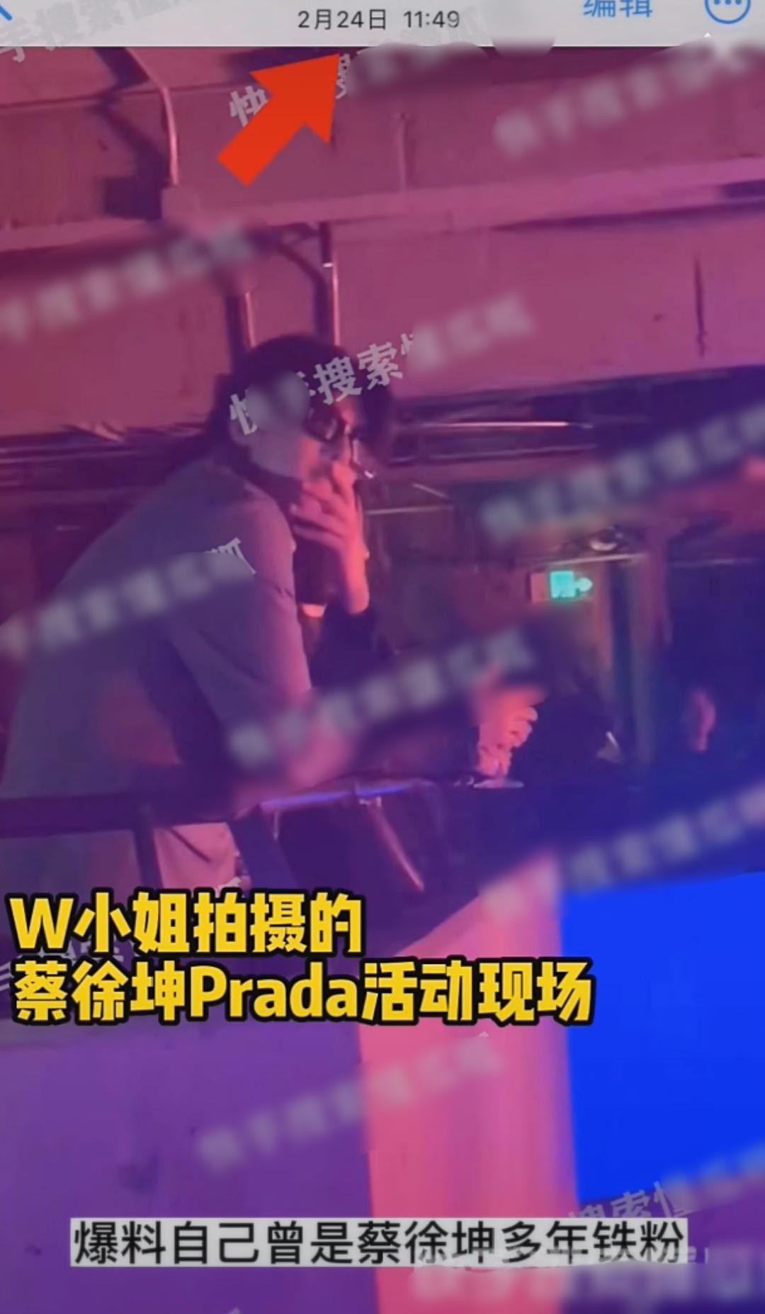 W女士也向娱记提供了2月24号自己拍摄到的视频,从视频来看,她所处的位置离蔡徐坤很近。