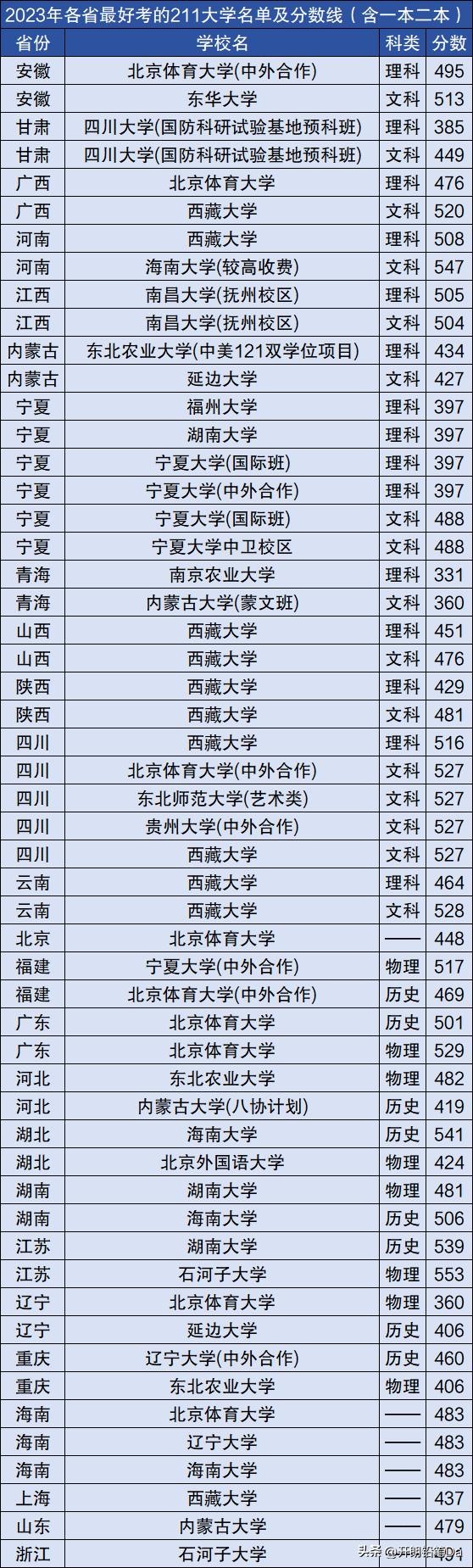 1、北京:448分(最好考的211是北京体育大学);
