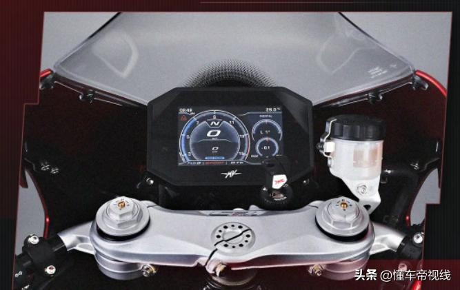AGUSTA F3 RR装备有5.5英寸的全彩TFT液晶仪表,车机系统支持与手机互联,同时内置有导航、巡航控制以及起步控制功能。除此之外,该车还提供弯道ABS、弯道牵引力控制、滑动控制、前轮离地控制以及第三代双向快排等配置。