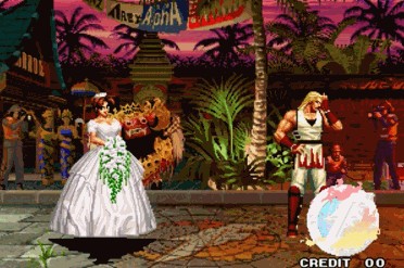 不知道什么时候,不知火舞开始了艰辛的逼婚之路,从饿狼传说一直求婚到拳皇2003,丝毫不解风情的安迪,依旧如故。
