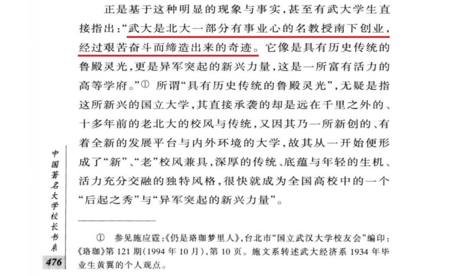 讲到了武大和北大一同,成为抗战时期全国四大名校之一(西南联大、中央大学、浙江大学、武汉大学)。