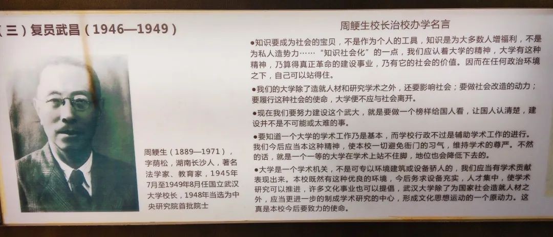 武大校长们的治校办学名言很多,新校长对这些也十分感兴趣。我陪他一一看过。也重点看了国立武汉大学时期三位北大出身校长的治校办学名言。