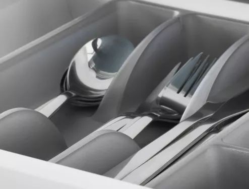 ◀白色的滤干架简约又大气,体积不大,不不占地方,且里面的槽口很多,可以放大量餐具。