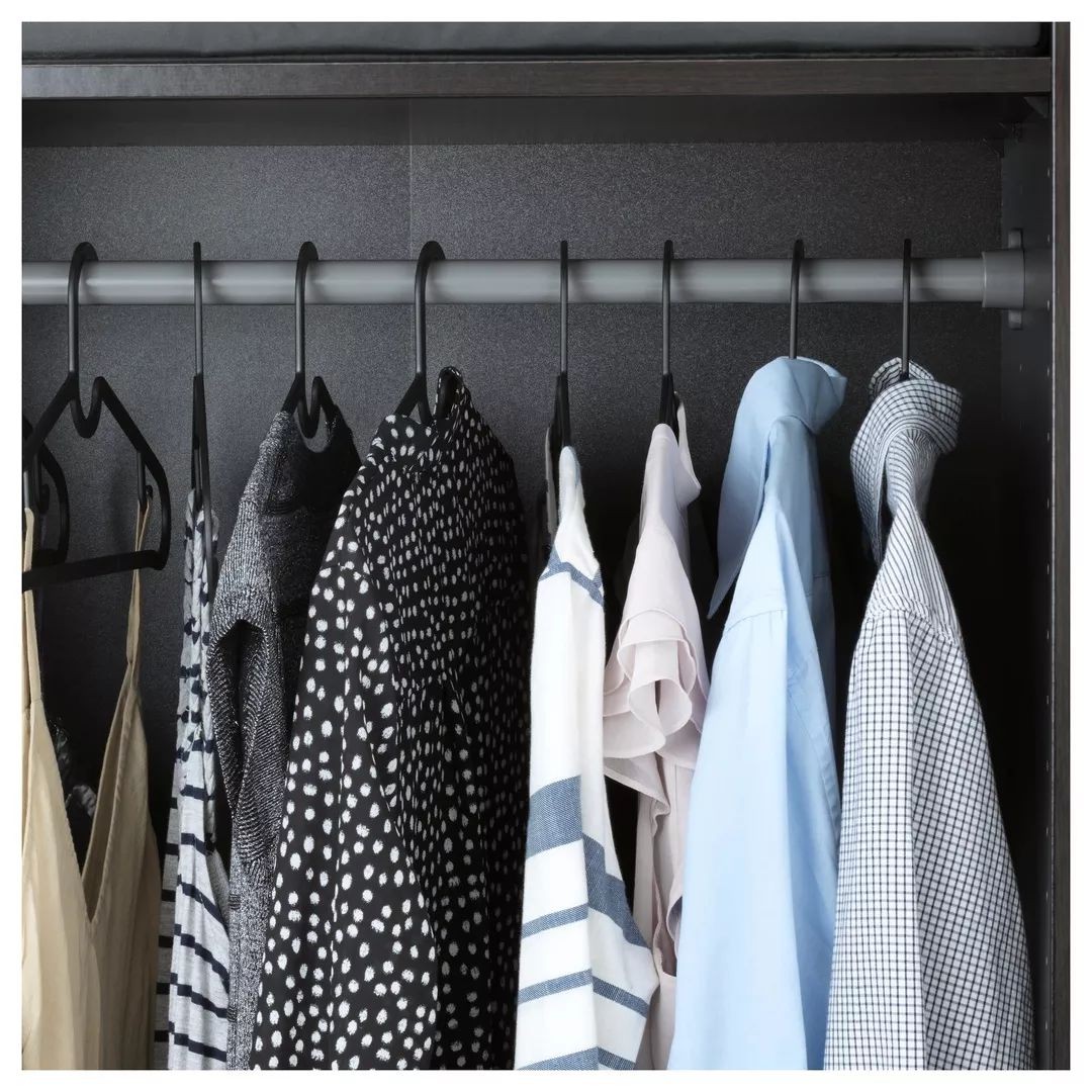 ◀便宜好用,简约又结实,甩劣质衣架两条街,占用的空间也不大,适合挂在衣柜里。打开衣柜看着整整齐齐的衣架简直治好强迫症了好吗!▶