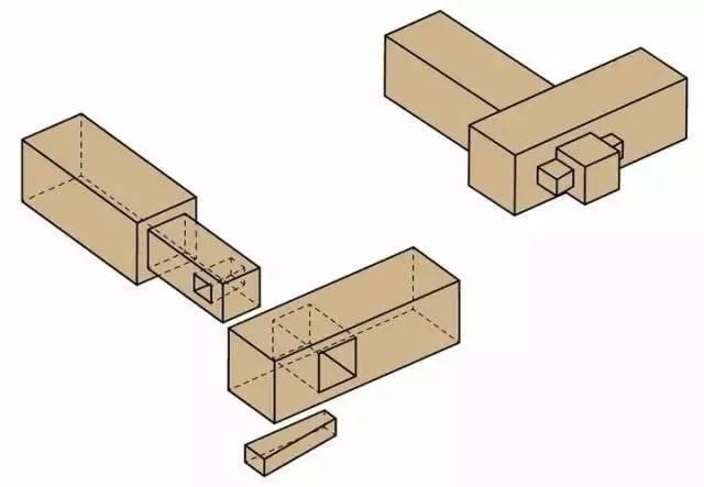 榫卯结构是榫和卯的结合,是木件之间多与少、高与低、长与短之间的巧妙组合,可有效地限制木件向各个方向的扭动。最基本的榫卯结构由两个构件组成,其中一个的榫头插入另一个的卯眼中,使两个构件连接并固定。榫头伸入卯眼的部分被称为榫舌,其余部分则称作榫肩。