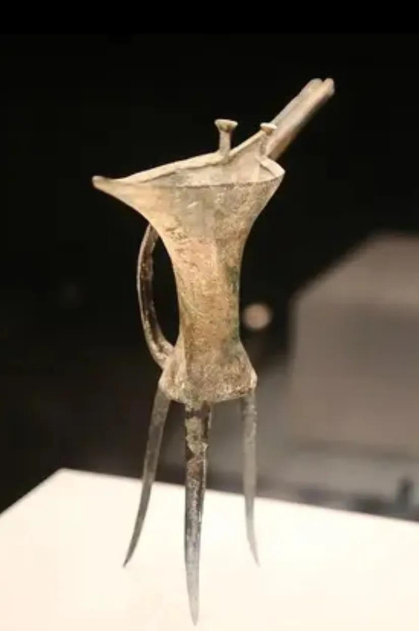 乳钉纹铜爵酒为夏代青铜酒器,出土于1975年偃师二里头遗址,其年代约为距今3800~3500年,为国家一级文物。