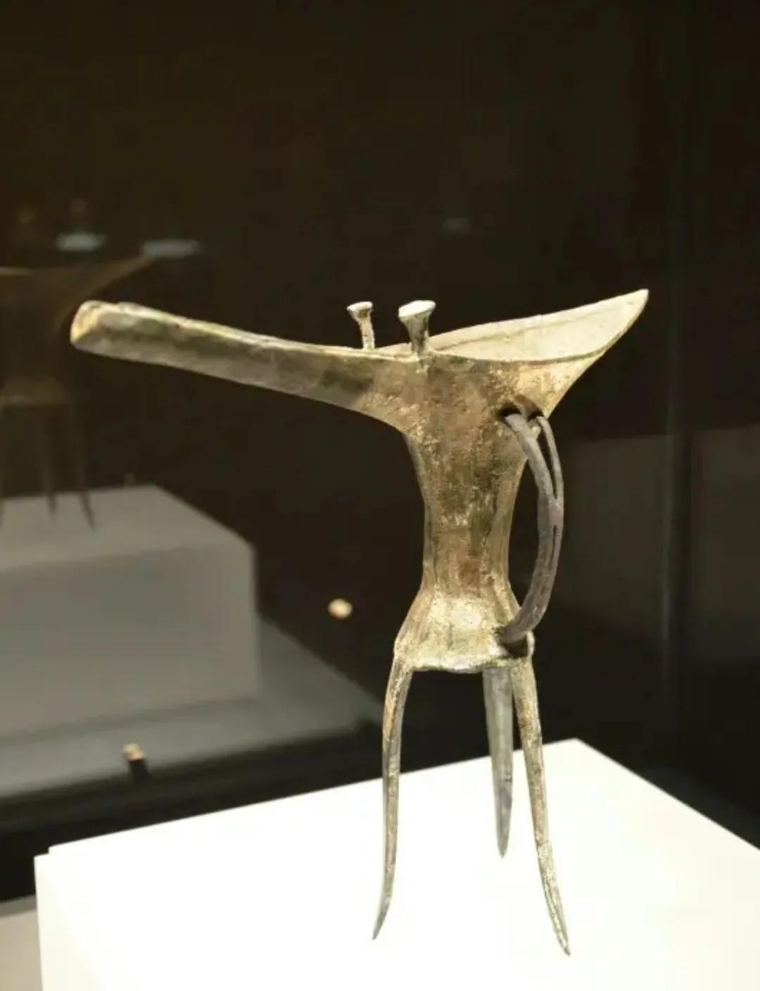 爵是饮酒器,可这件爵的造型并不方便喝酒。有专家认为,这件爵有可能是在祭祀过程中使用的,是一件礼器。祭祀时把它放在高台之上,下面的三足架火加热,让里面的酒散发出蒸汽,好让天上的神明闻到酒香。之后再执一侧的鋬,使它倾斜,酒通过长流流到地上,行“灌地之礼”。