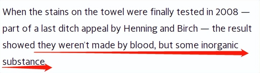 2008年的一次上诉中,更新的实验室基因检测手段证明,那条毛巾上沾有的并非血迹,而是某种无机物质。
