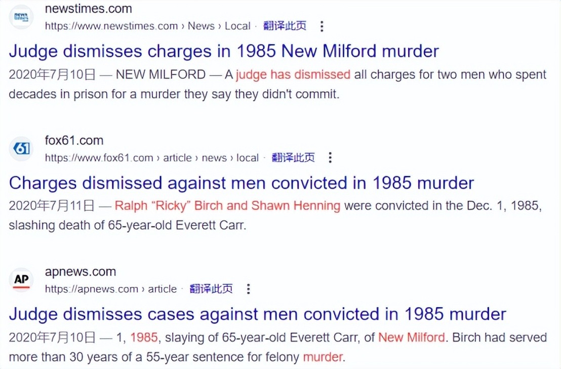 2019年,高等法院正式推翻两人的定罪,称因肖恩(Shawn)和瑞奇(Ricky)的衣服上和车里都没有发现血迹,犯罪现场发现的DNA、头发、指纹等也没有一项与二人相符,康涅狄格州法官下令重审此案。