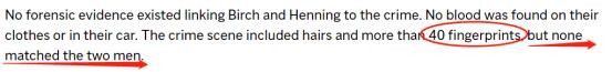 然而,警方在彻底搜查肖恩(Shawn)和瑞奇(Ricky)的身体、财产、汽车以及他们丢弃被盗汽车的地方后,都没有发现死者的血液、毛发或DNA。案发现场发现的头发和40多个指纹也与他们不匹配。也就是说,当时没有任何物证以及人证,可以他们与犯罪联系起来。