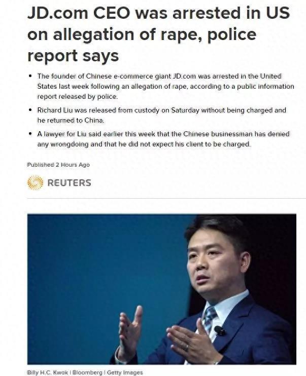 CNBC 警方报道称,京东首席执行官因涉嫌强奸在美国被捕。