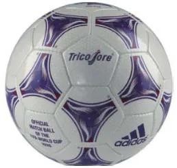 这款足球由11片T型皮革手工缝制的,因此,球的表面或多或少有些凹凸不平。这类足球被称为T球。