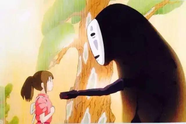 千与千寻中的无脸男,虽然不确定这是面具还是无脸男的实际面孔,怪物一个,空虚与寂寞的代表,被女主真心所感化,其实还是挺可爱,挺善良的。