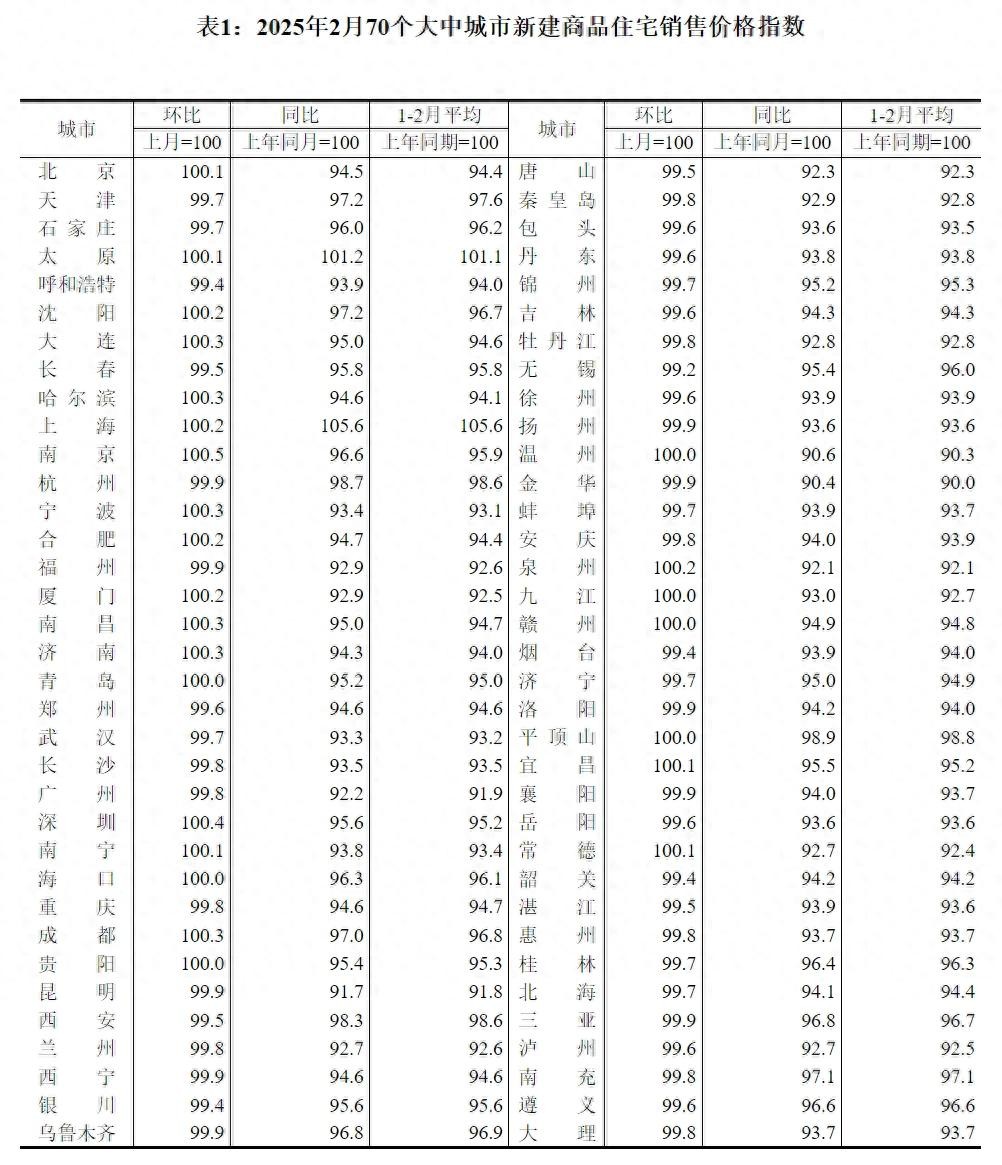 在促进房地产市场止跌回稳的政策作用下,70个大中城市中,2月份一线城市新建商品住宅销售价格环比继续上涨,一二三线城市新建商品住宅和二手住宅销售价格同比降幅继续收窄。