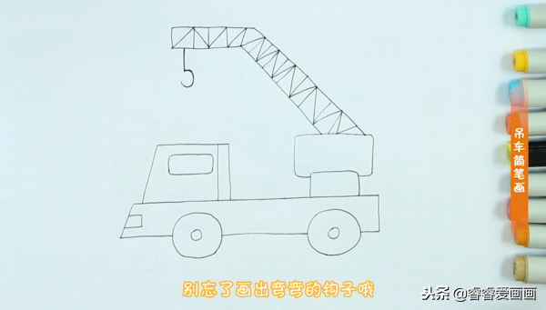 其实吊车的简笔画注意难在了吊臂的细节部分,大家只要把这个地方给描绘好了,那么吊车也就能够画好了。