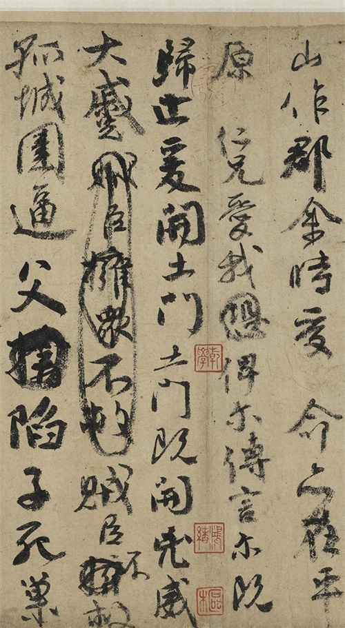 如果你仔细研究《祭侄文稿》,会发现它充满着书写时的原始状态,充满涂改圈点,呈现出一种汹涌澎湃的书写风格。这在很大程度上是因为颜真卿当时的悲伤和愤怒,这份情感贯穿了整个作品。相较于王羲之的《兰亭序》,表现了王羲之的心旷神怡,摆脱拘束,颜真卿的《祭侄文稿》则深刻体现了他的悲愤之情,因此更具人情味。当你了解作品背后的故事,就能深切感受到这位书法家忠臣的爱国之情。