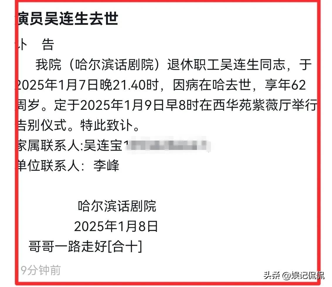 1月9日,资深“戏骨”吴连生突发疾病去世的消息,引来了全网的轰动和惋惜。