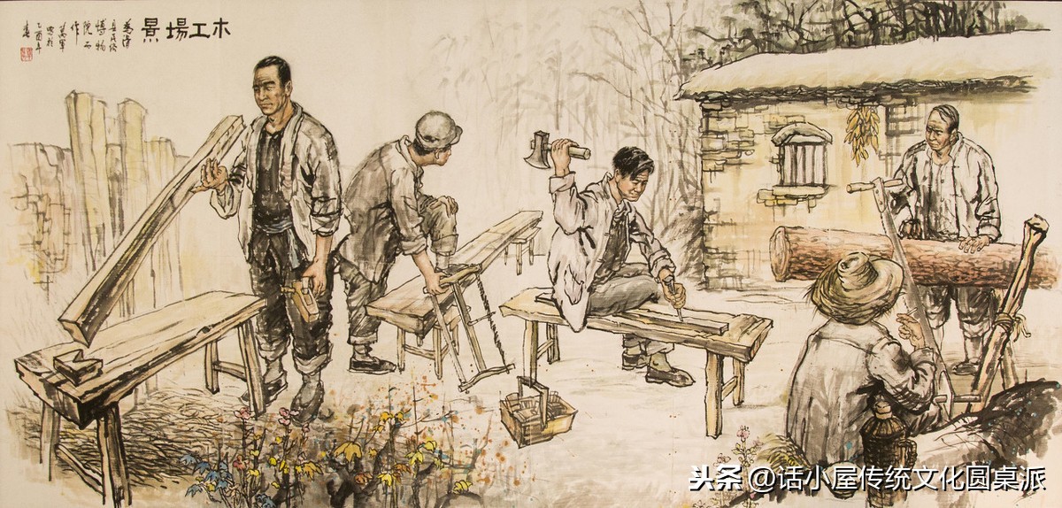 “白天出去耕田,到了夜晚还要回来搓麻绳,村里的年轻男女都挑起家庭的重担。小孩子虽然不会耕田织布,但也依在桑树下学着大人的样子种瓜。”