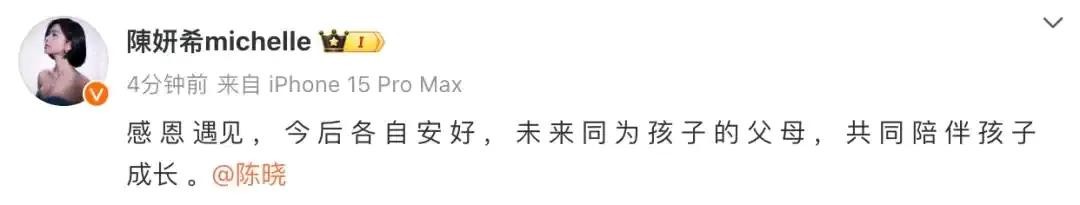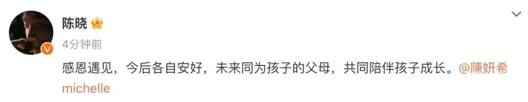 声明里说 “感恩遇见,今后各自安好,未来同为孩子的父母,共同陪伴孩子成长” 。