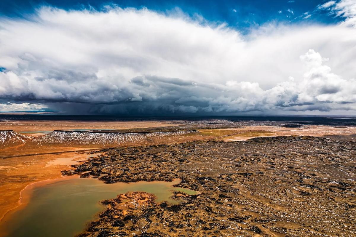 高海拔与湿地环境:平均海拔超过5000米,气候寒冷多变。地表多为沼泽湿地和盐碱地,地下水位较高,土壤湿润。丰富生物资源:羌塘是许多珍稀动物的栖息地,如藏羚羊、雪豹、藏野驴等。这里的高寒草甸和湿地环境也为各种植物提供了适宜的生长条件。人类活动的缺乏:由于地理环境的恶劣,人类活动几乎不存在。这里没有城市、村庄或道路,只有广袤的草原和湖泊。