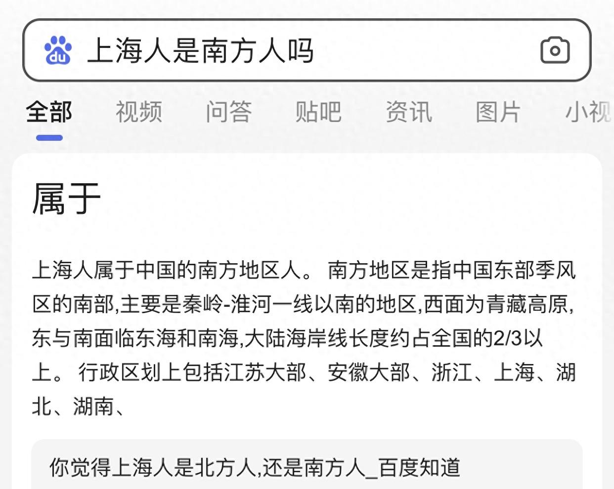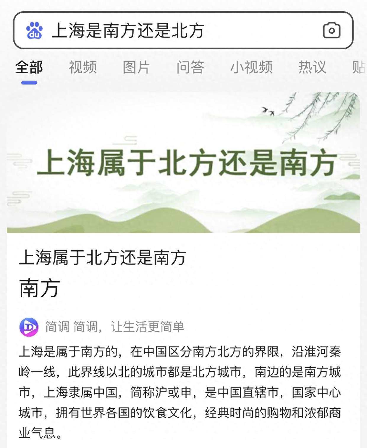 但是一般我们的认知里,如果不分东西,把中国分成南北的话,上海是属于南方的。