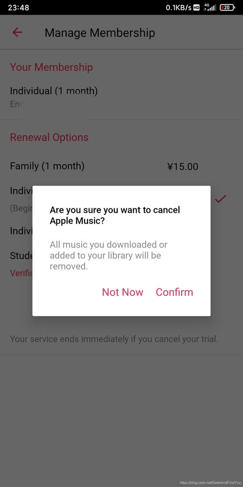 在苹果音乐订阅详情页面中,找到并点击“取消订阅”选项。然后按照提示操作,确认取消订阅服务。
