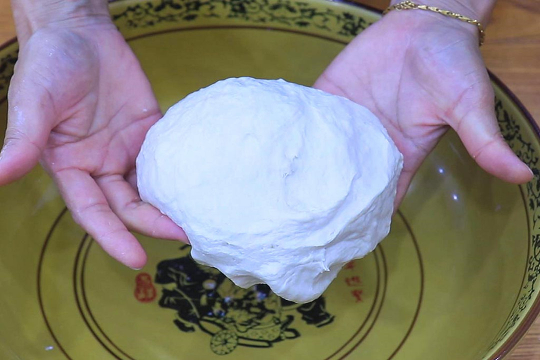1.盆中放入普通面粉200克,加入食盐2克增加筋性,倒入常温水,先用筷子搅成面絮,再淋入一点植物油,淋入植物油一是和面时不容易粘手,二是面团起酥口感更好。然后下手和成面团,面团不要和得太硬,要稍微软一点,和好以后饧面松驰10分钟,松驰后的面团会更加柔软易于整形。
