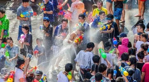 到了节日,傣族男女老少穿上节日盛装,而妇女们则各挑一担清水为佛像洗尘,求佛灵保佑。"浴佛"完毕,人们就开始相互泼水,表示祝福,希望用圣洁的水冲走疾病和灾难,换来美好幸福的生活。象征着吉祥、幸福、健康的一朵朵水花在空中盛开,人们尽情地泼尽情地洒,笑声朗朗,全身湿透,兴致弥高。入夜,村寨鼓乐相闻,人们纵情歌舞,热闹非凡。整个节日期间,除有赛龙船、放高升、放孔明灯、泼水、丢包等传统娱乐活动外,还有斗鸡、放气球、游园联欢、物资交流等新的活动。