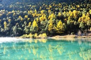 普达措在藏语中的意思是普度众生抵达幸福的彼岸。在六七月的普达措,可以看到红颜光彩的杜鹃花海,“杜鹃醉鱼”就是碧塔海的一绝,虽然醉鱼有一些夸张,但是这里的花海还是非常美丽的。