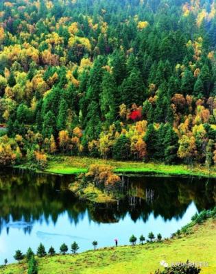 7、8月,金黄的草原,黛青的山崖,皑皑白雪倒映在水里,明镜秋水,颇有“半湖青山半湖水”,强烈安利是什么梗。