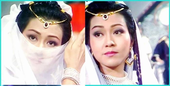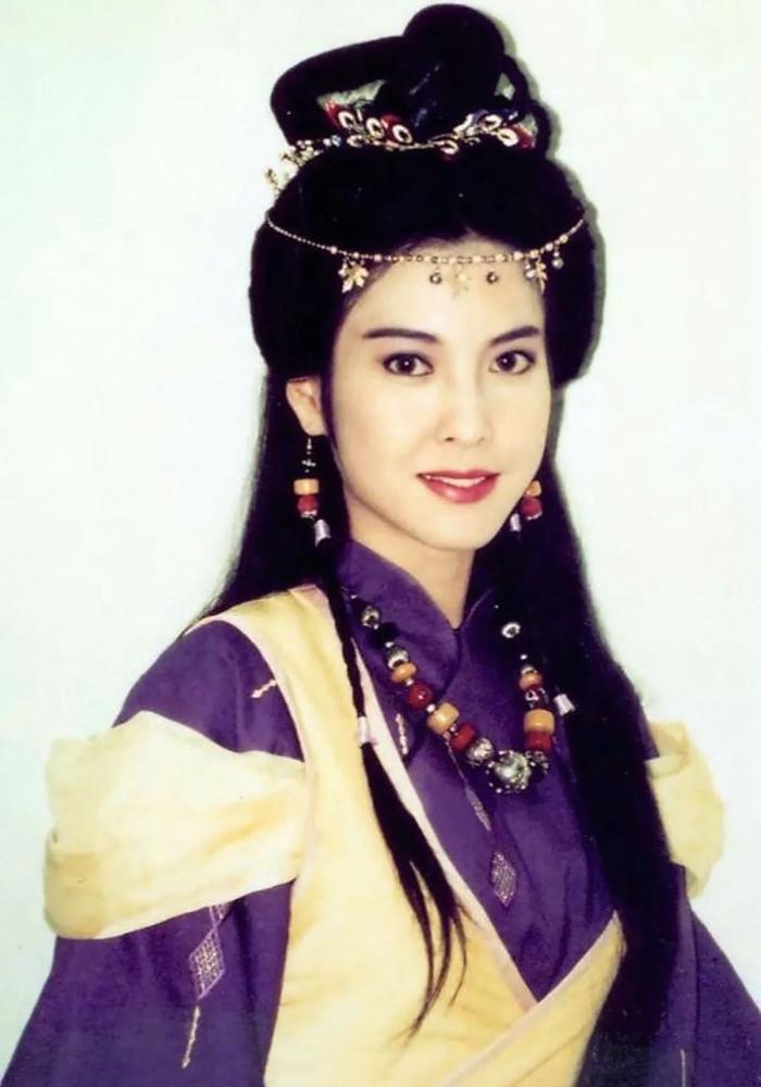 那版的张无忌是郑少秋,周芷若是赵雅芝,赵敏是汪明荃,小昭是陈玉莲,所以这位紫衫龙王显得比较暗淡,但颜值绝对不低,而且也极具异域风情,相当符合原著。
