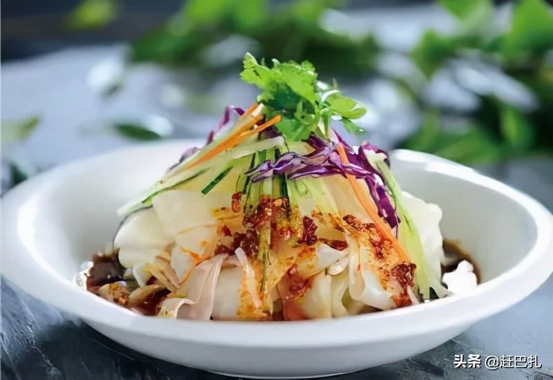 当一盘色、香、味俱全的凉皮放到你面前时,会骤觉浑身舒爽,吃到嘴里,香在心头,饥渴顿消。吃后,还舍不得放下筷子。