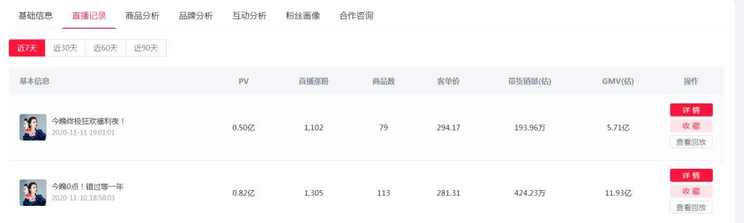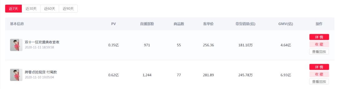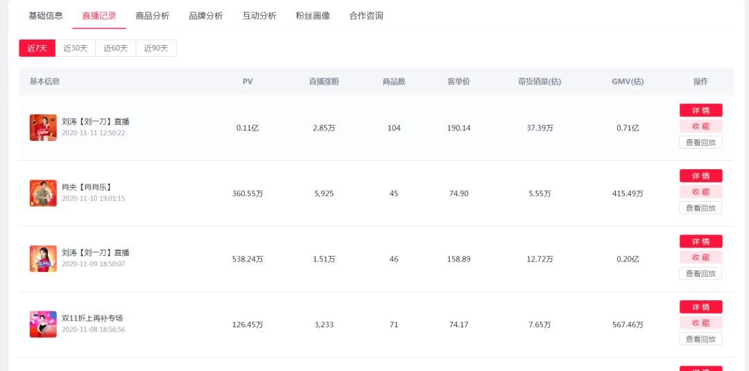 (灰豚数据淘宝版—播主详情—直播记录)