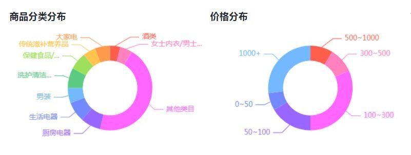 与薇娅、李佳琦不同,刘涛直播间的商品分类较为均匀,更为侧重日常所需的商品,价格占比较大的为100-300以及1000+。