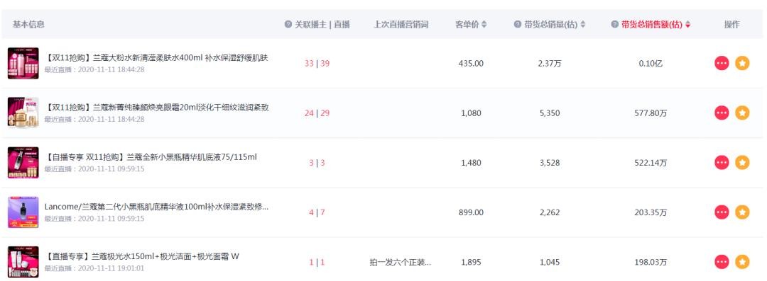 通过品牌详情—直播分析可以发现,在双11当天,兰蔻分别出现在薇娅、雪梨、林依轮等播主的直播间。