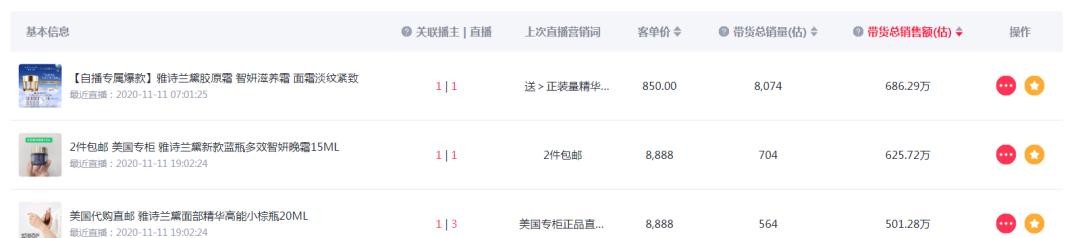 排名仅次于兰蔻的雅诗兰黛在双11当天也关联了薇娅直播间。