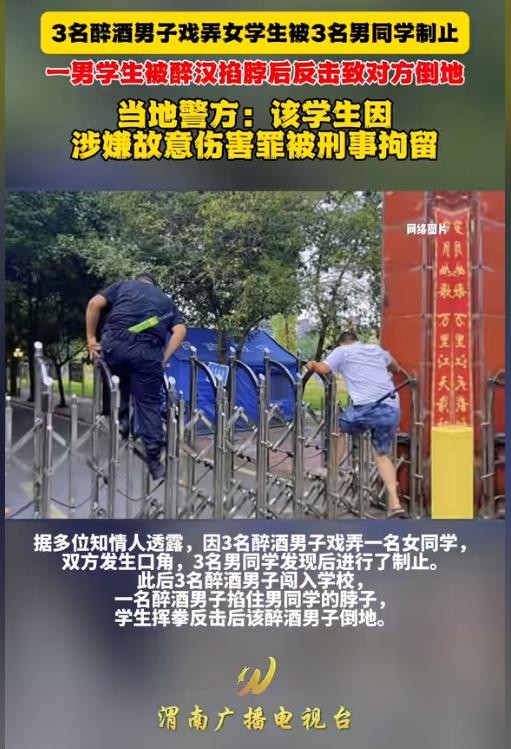 "3月31日晚约8点,在济南电子机械工程学院学校内,一名女生在拿外卖时,被三名醉酒男子假装外卖送货员戏弄。女生因此爆粗口,引发了口角。当时,小超和其他两名男生正在检查学生是否违规点外卖,他们目睹了醉酒男子的行为,随即与其发生了争执。随后,醉酒男子试图翻越栅栏进入校园,未成功后又前往学校大门口,不顾安保人员阻拦,强行闯入。其中一名男子甚至掐住了小超的脖子,面对生命威胁,小超与一名醉酒男子发生了激烈打斗,导致该男子受伤倒地。头部撞到地面。在冲突发生后,警方迅速介入处理,120急救人员也赶到现场将倒地的醉酒男子带走。警方最终判定为双方互殴,双方均表示不愿引起更大的纠纷,最终签署了和解书。