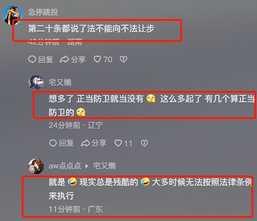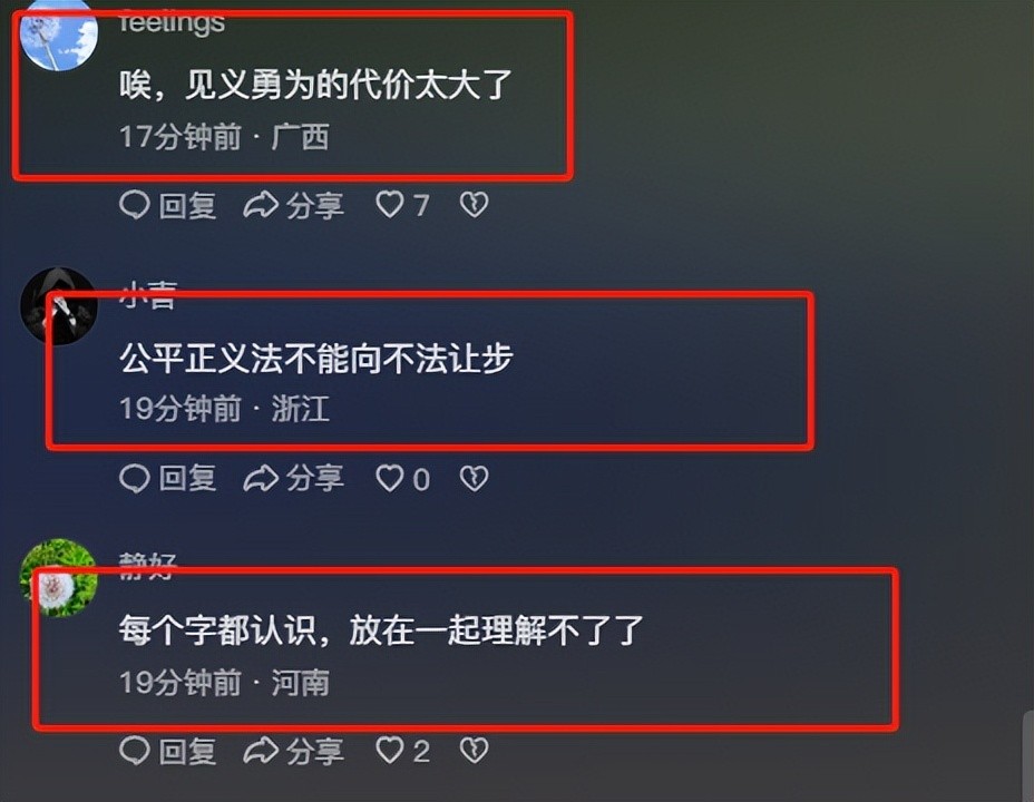 '每个字都认识,放在一起理解不了了’“唉,见义勇为的代价太大了”“公平正义法不能向不法让步”