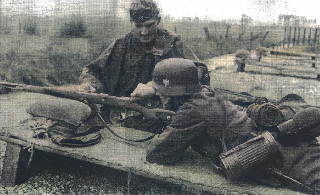 一名国防军士官正在指导士兵使用kar98k来进行设计训练