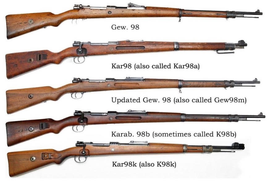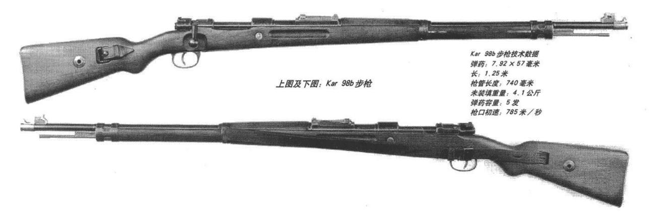 kar98b是在第一次世界大战期间德军制式步枪Gew98的改进型号kar98a的基础上改进而来的。作为Gew98的卡宾型号,其长度仍然达到1.25米,事实上和Gew98长度一样。