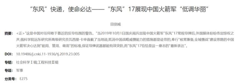 社会科学 田剑威 “东风”快递,使命必达--“东风”17展现中国火箭军“低调华丽”