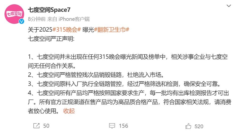 七度空间也赶紧表态,说他们跟涉事企业根本不是一路货色,残次品在他们这里向来是零容忍,从原料到生产全程都严格把关,出厂的产品必须符合国家标准。