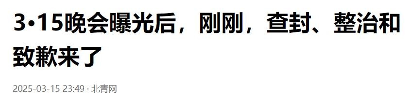 北青网--3·15晚会曝光后,刚刚,查封、整治和致歉来了--2025-03-15