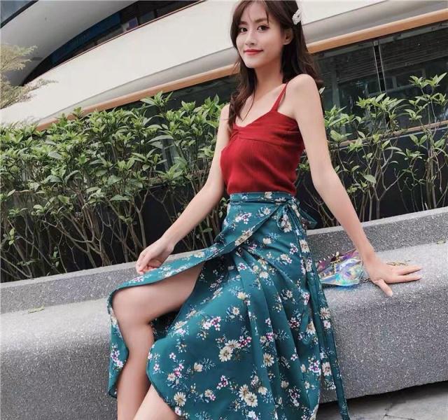 碎花裙给人一种清新的感觉,同时也有点可爱,这条裙子很复古,宽松的不规则裙对身材有很大的耐受性,不挑身材,胖瘦都可以选择,雪纺面料的碎花元素,简单大方,A型裙的设计可以很好的突出身材,突出柔软的气质,多才多艺,搭配一件鲜红的T恤,非常甜美。它又小又新鲜。搭配五:一片式系带雪纺碎花半身裙+背心式T恤