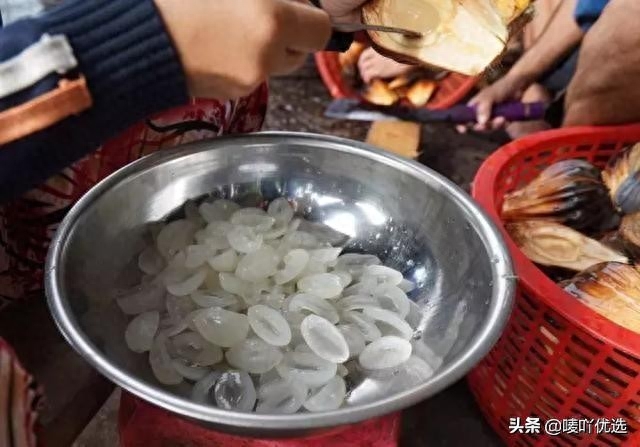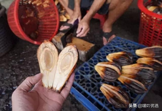 虽然在国内是属于保护植物,但是在国外(越南)它竟然只卖5块钱一个。它的果肉是直接切开之后用的工具撬出来的,它的果肉是透明的。不仅可以直接吃还能用来做糖渍。成熟果子的果瓣,可以看见它的果肉颜色接近半透明状态,另外它的果肉吃起来是比较甜的,一般用来制作饮料和甜品,当地人还是比较喜爱它的。